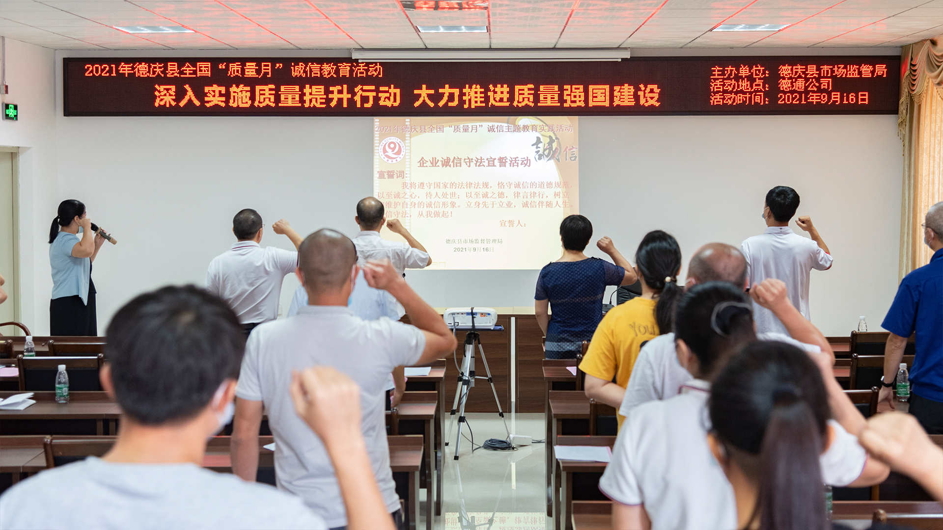 今年全國“質(zhì)量月”以“深入實施質(zhì)量提升行動,大力推進質(zhì)量強國建設(shè)”為主題,由市場監(jiān)管總局等20個部門聯(lián)合開展。9月16日,德慶縣市場監(jiān)管局組織當?shù)仄髽I(yè)在德通風機總部培訓(xùn)中心進行了系列宣傳活動。